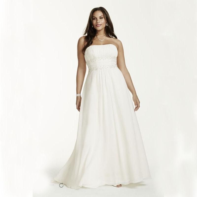 Plus Size Chiffon Empire Wedding Dresses Simple Style Sweep Train Pleats Beads Strapless A Line Beach Bridal Gowns Robe De Mariage W710 Vintage
