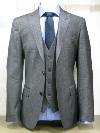 Costume Gris Clair Cintré 3 Pièces Pour Homme Carreaux Classique