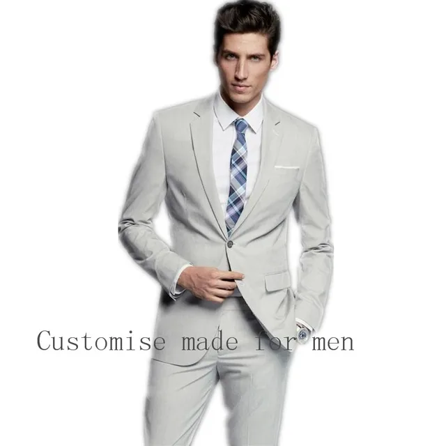Nouveau Gris Clair Casual Hommes Costume 2 Pièces Veste Pantalon
