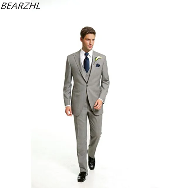 Gris Clair Costumes De Mariage Slim Fit 3 Pièce De Mariage Smoking