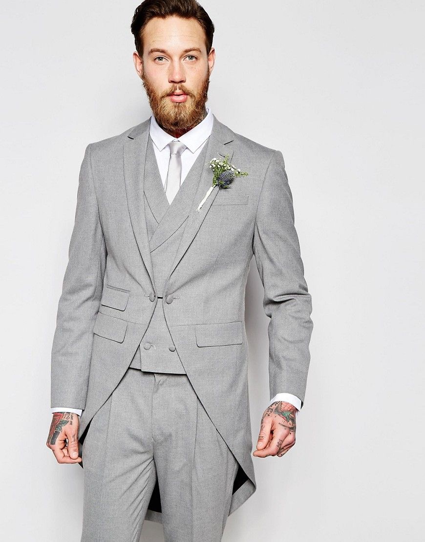 Acheter Gris Clair Tailcoats Hommes Costumes Formelle Robe De Tenue