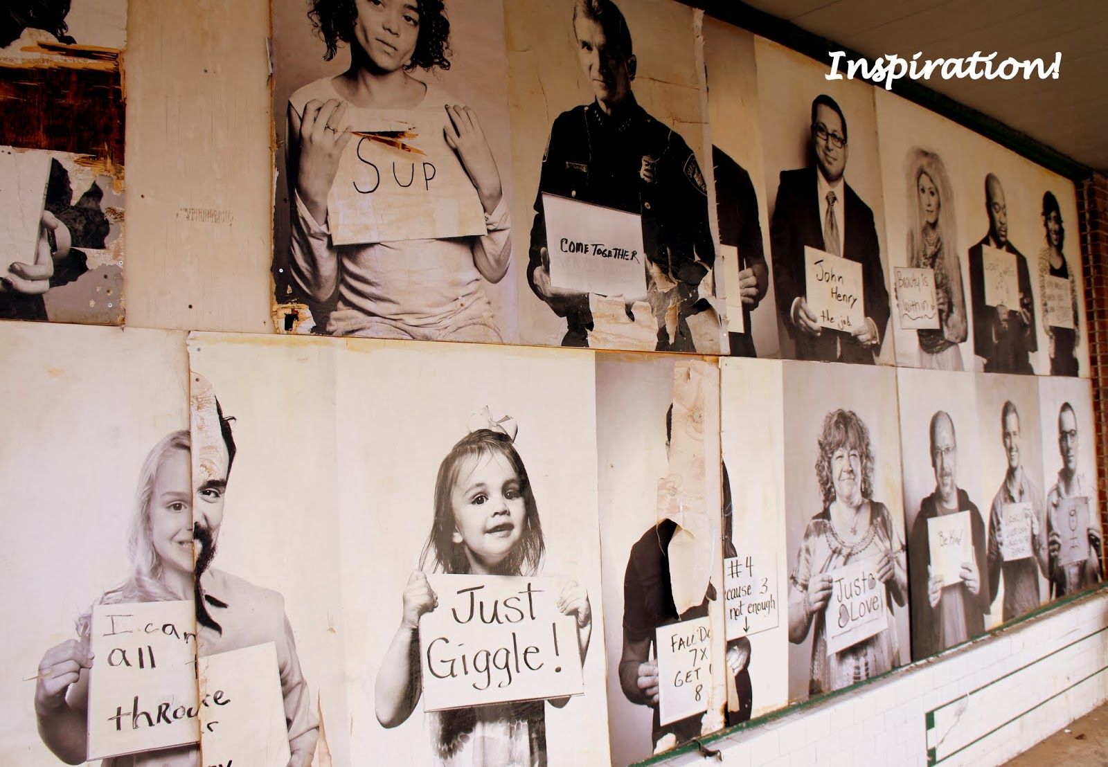 While enjoying my spinach enchiladas, I looked across the street to see this wall! I love inspirational messages along with expressive faces.