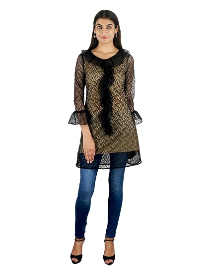 Buy Stakriti1 Leaf Net Tunic Black Frill Dress For Girls Women