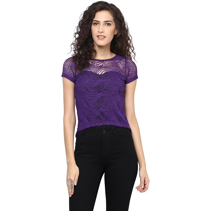 Buy Veronique Women S Purple Net Fabric Self Design Crop Top