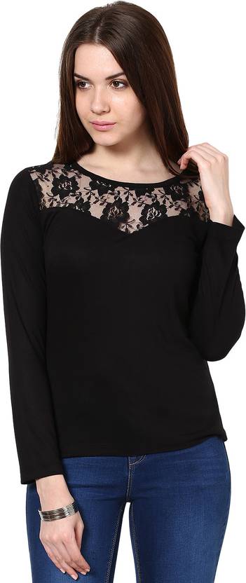 Betiyan Party Full Sleeve Self Design Women S Black Top Buy