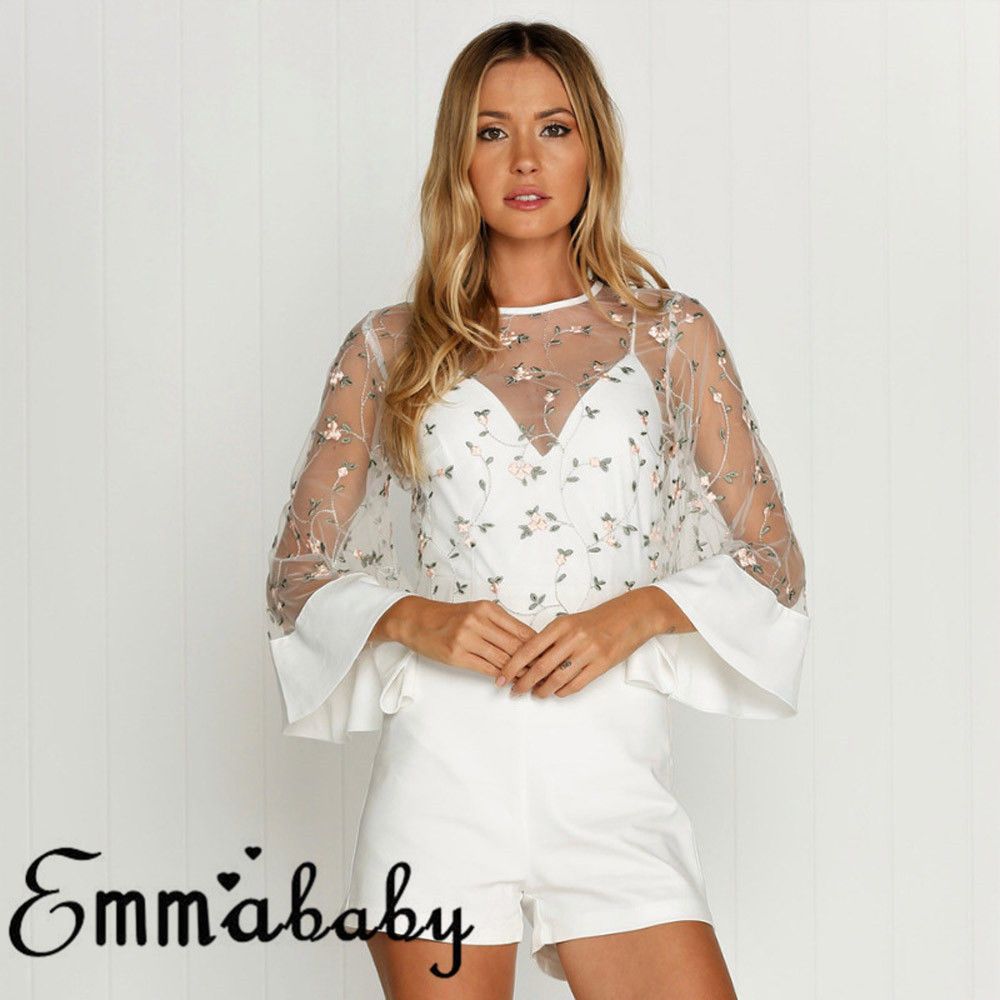 Mesh T Shirts Hot Sexy Womens Long Sleeve See Through Ruffled