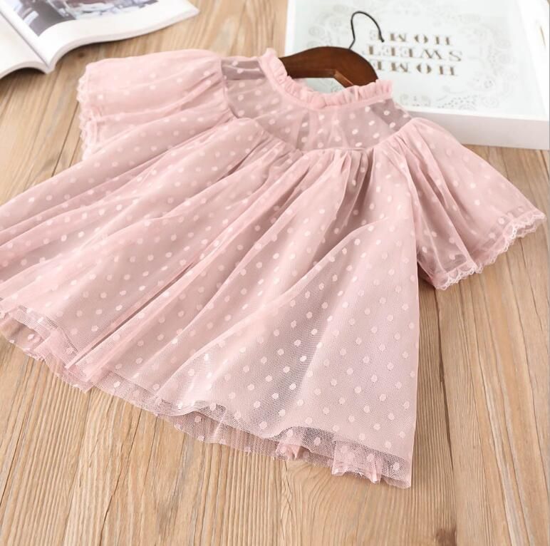 New Girls Summer Shirt Kids Net Yarn Top Polka Dot Shirt Stringy