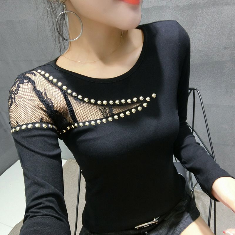 Vetement Femme 2019 Net Yarn Women S Rivet Beads T Shirts Long